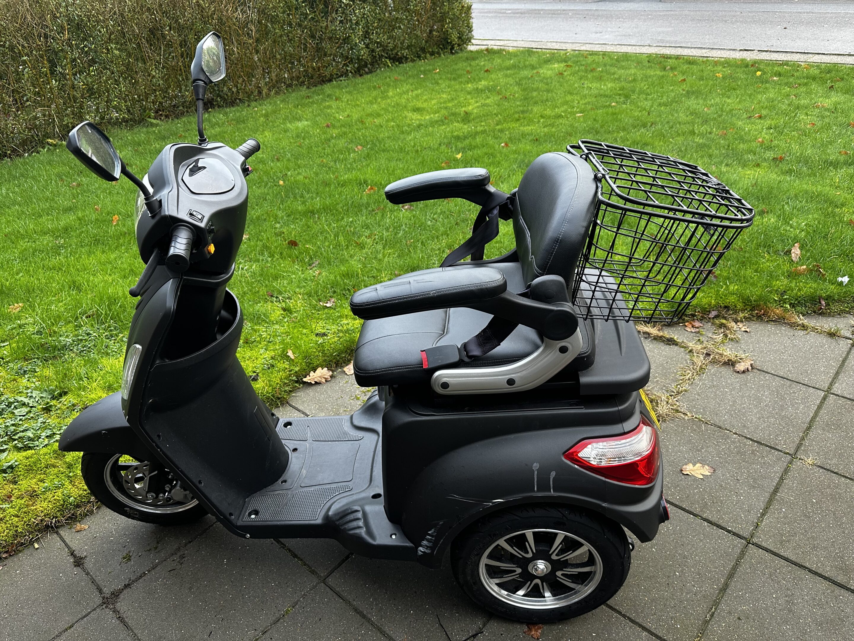 3 hjulet el scooter. Der har kørt cirka 180 km.
