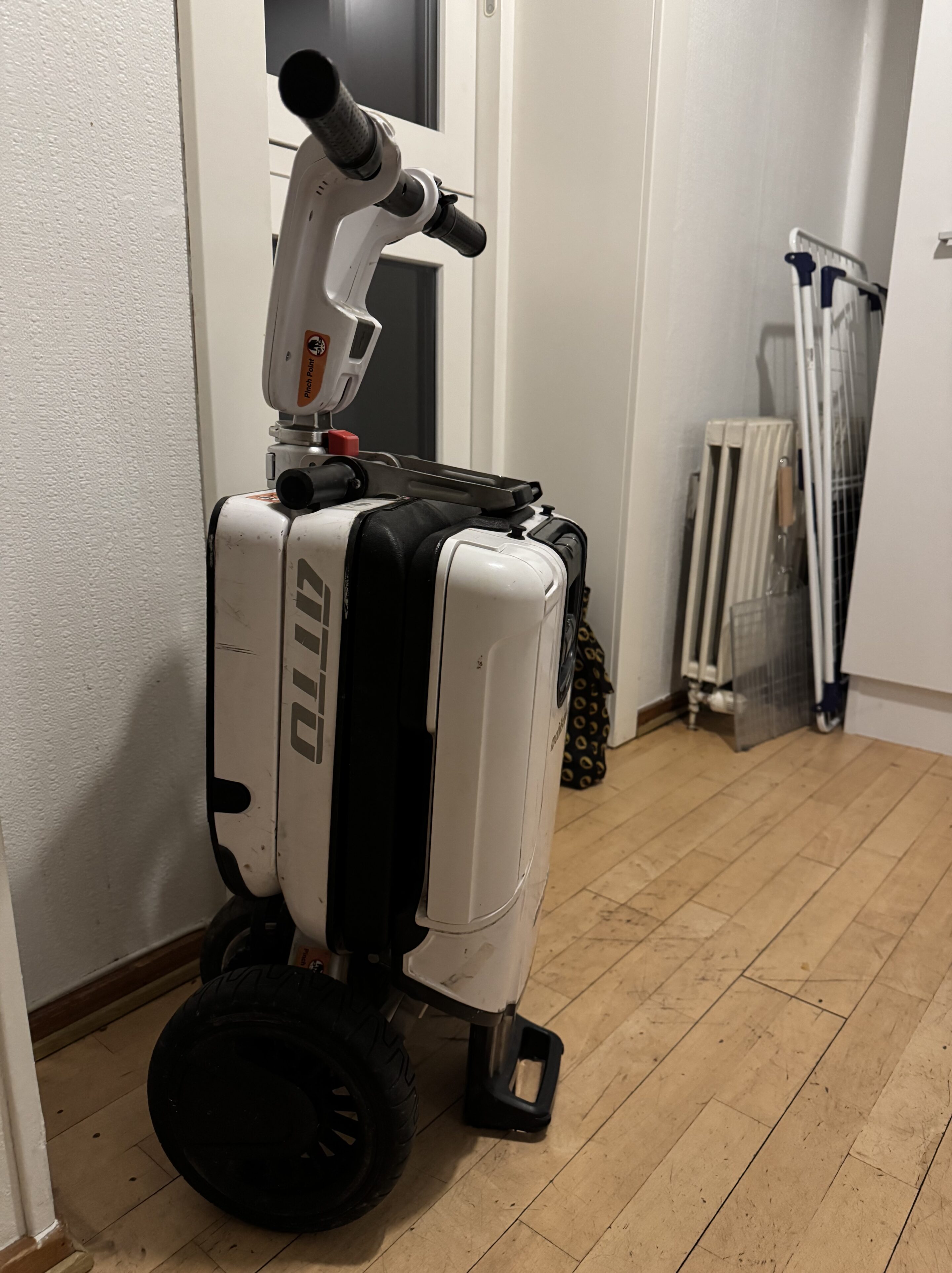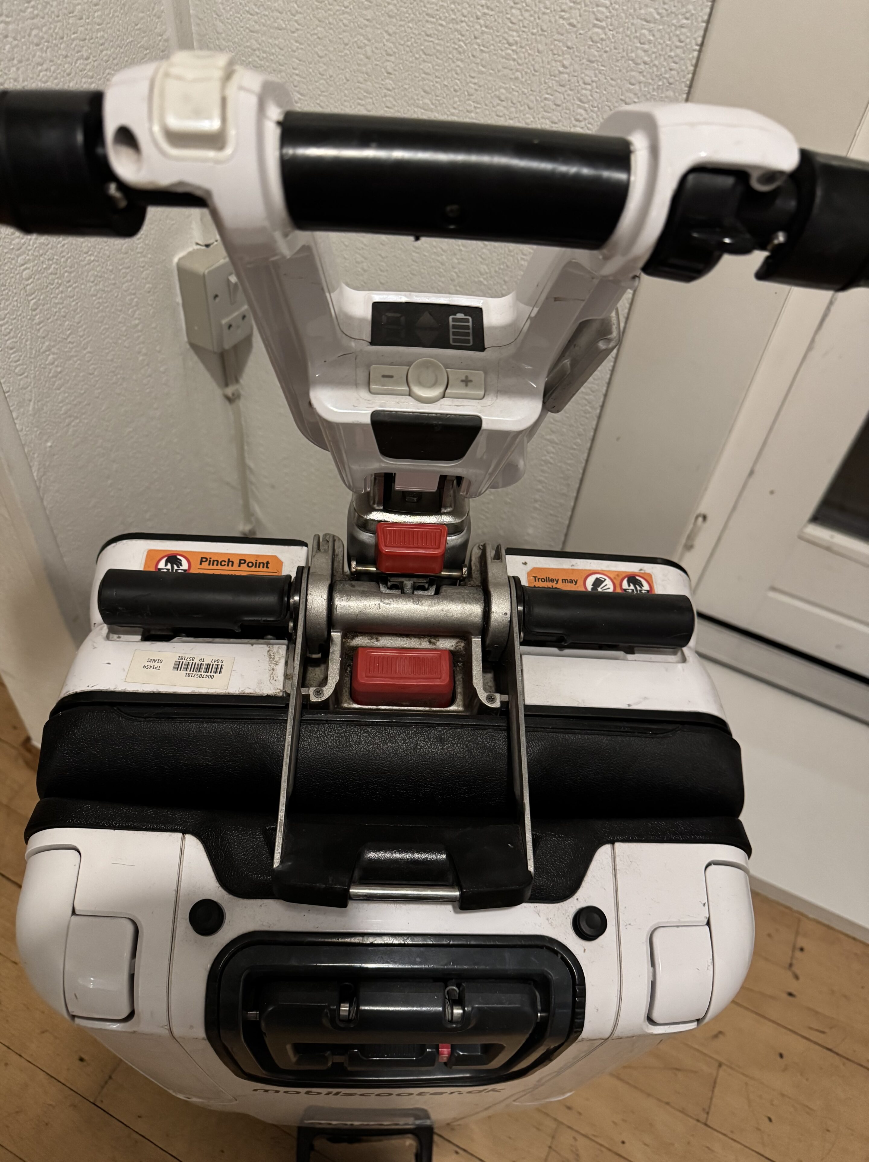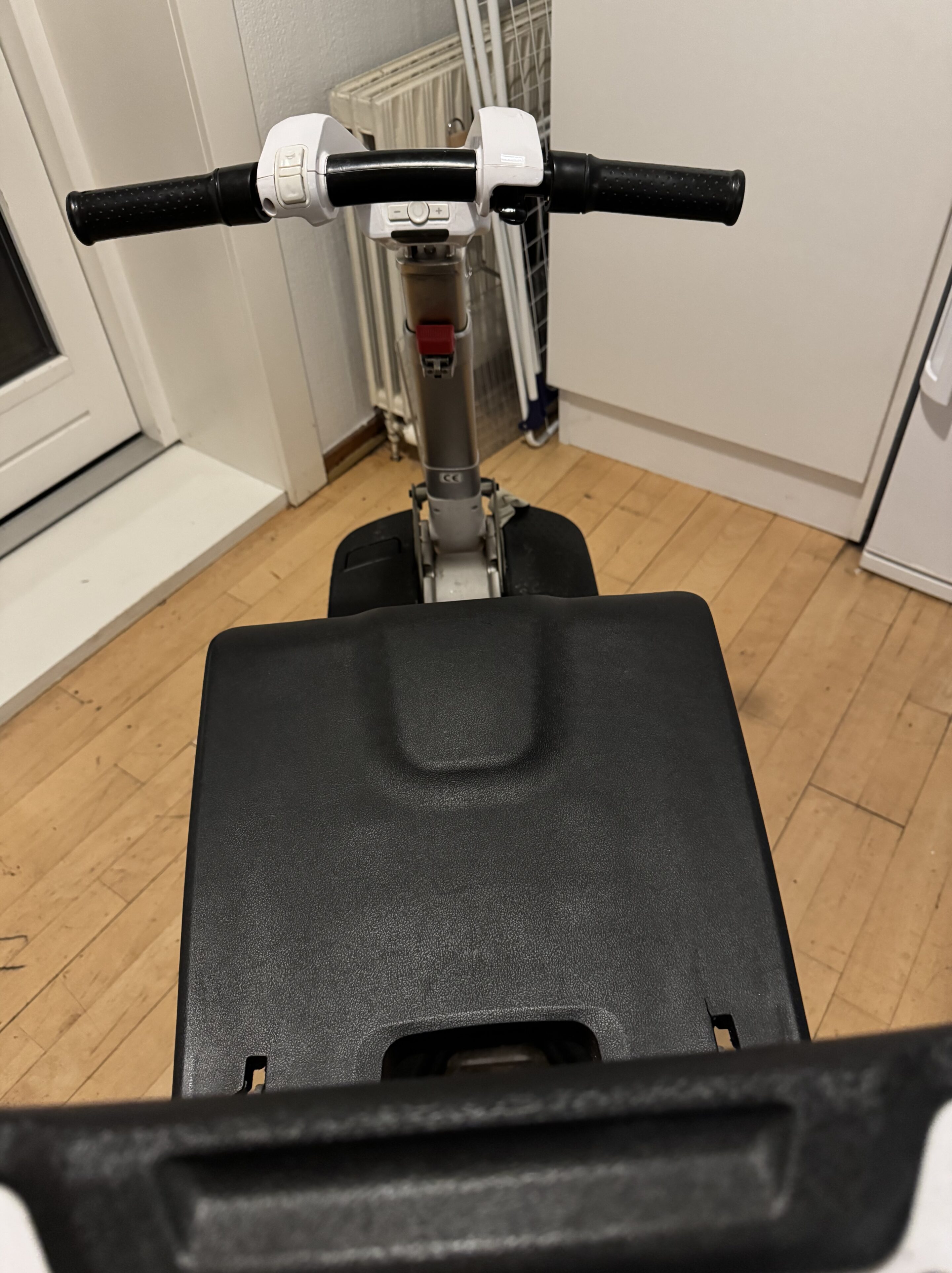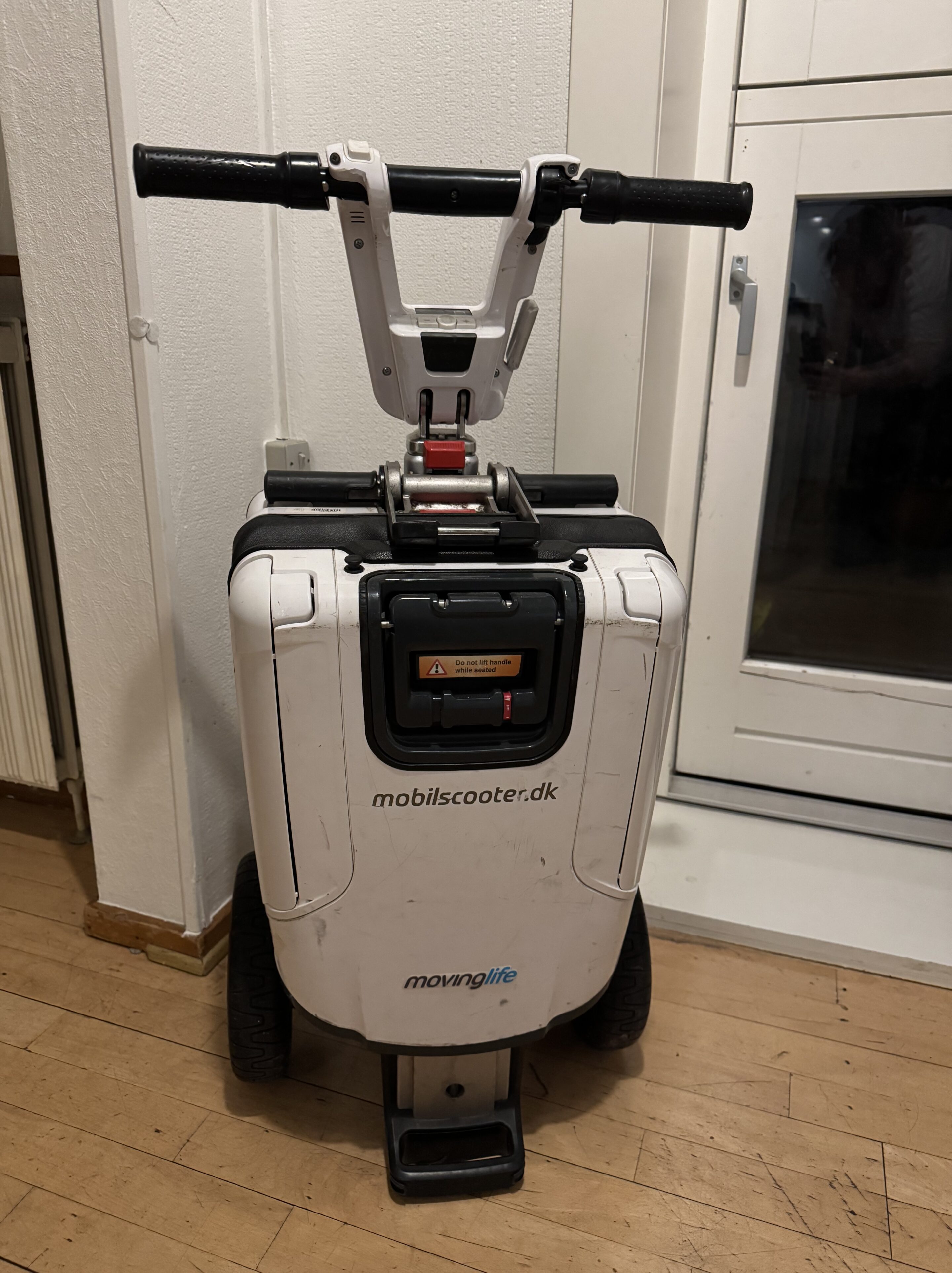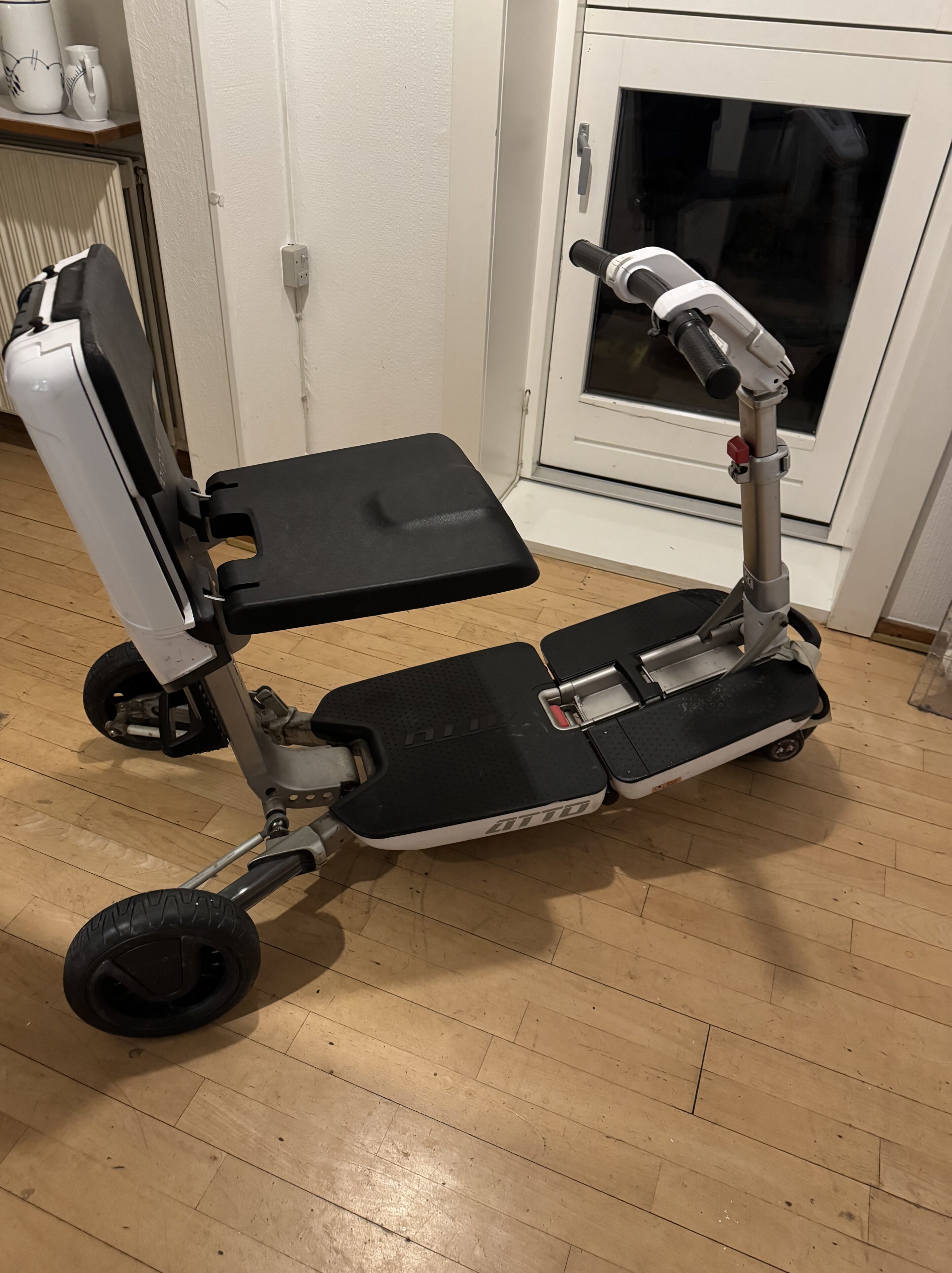 Brugt mobilscooter med tilhørende armlæn. God men brugt. Er dog ikke blevet brugt de seneste år. Den kan klappes helt sammen, som en kuffert.