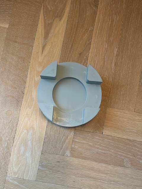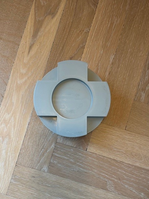 Med den flade side op: placeres runde eller firkantede ben i den 7,8 cm brede fordybning.