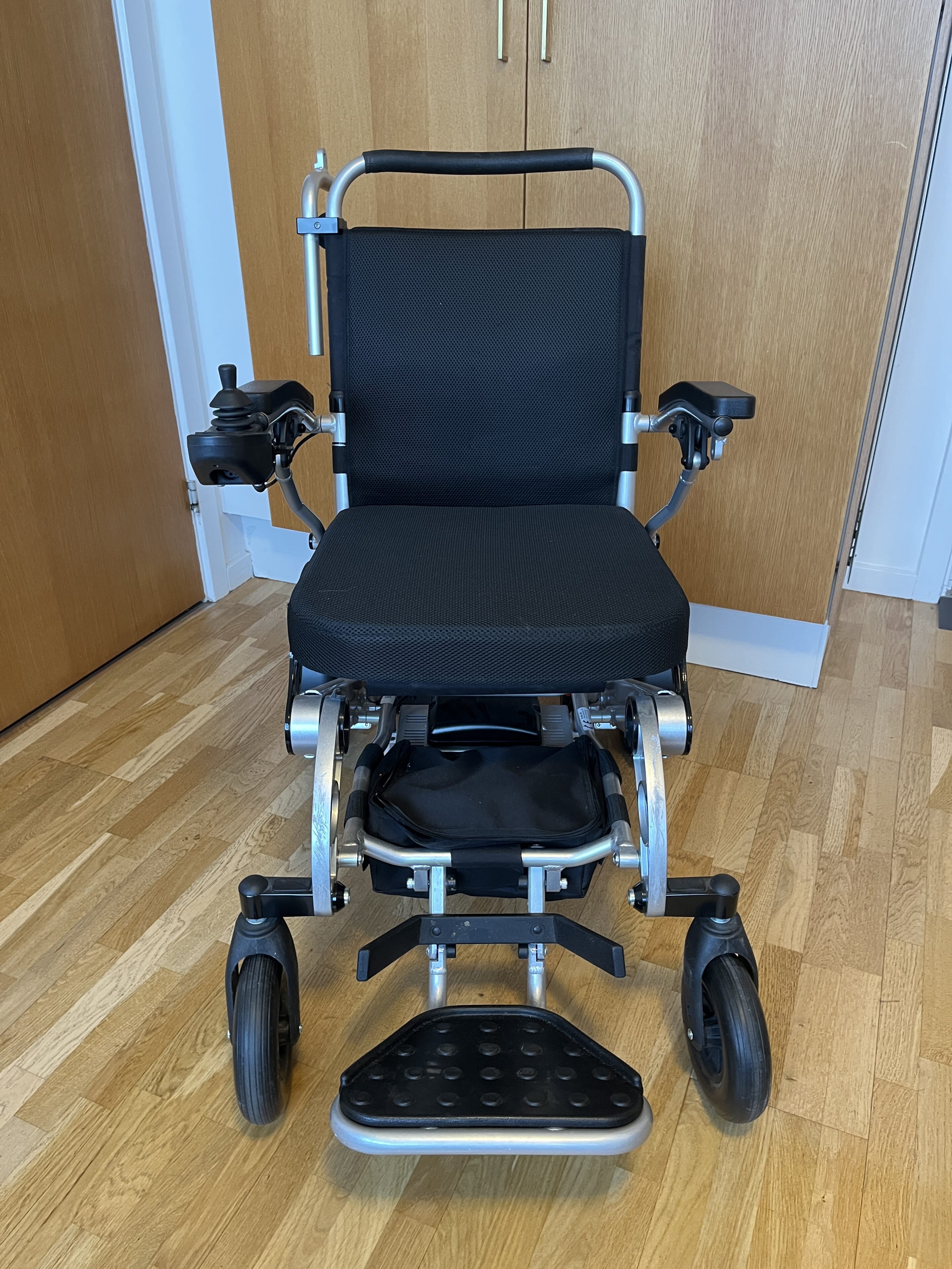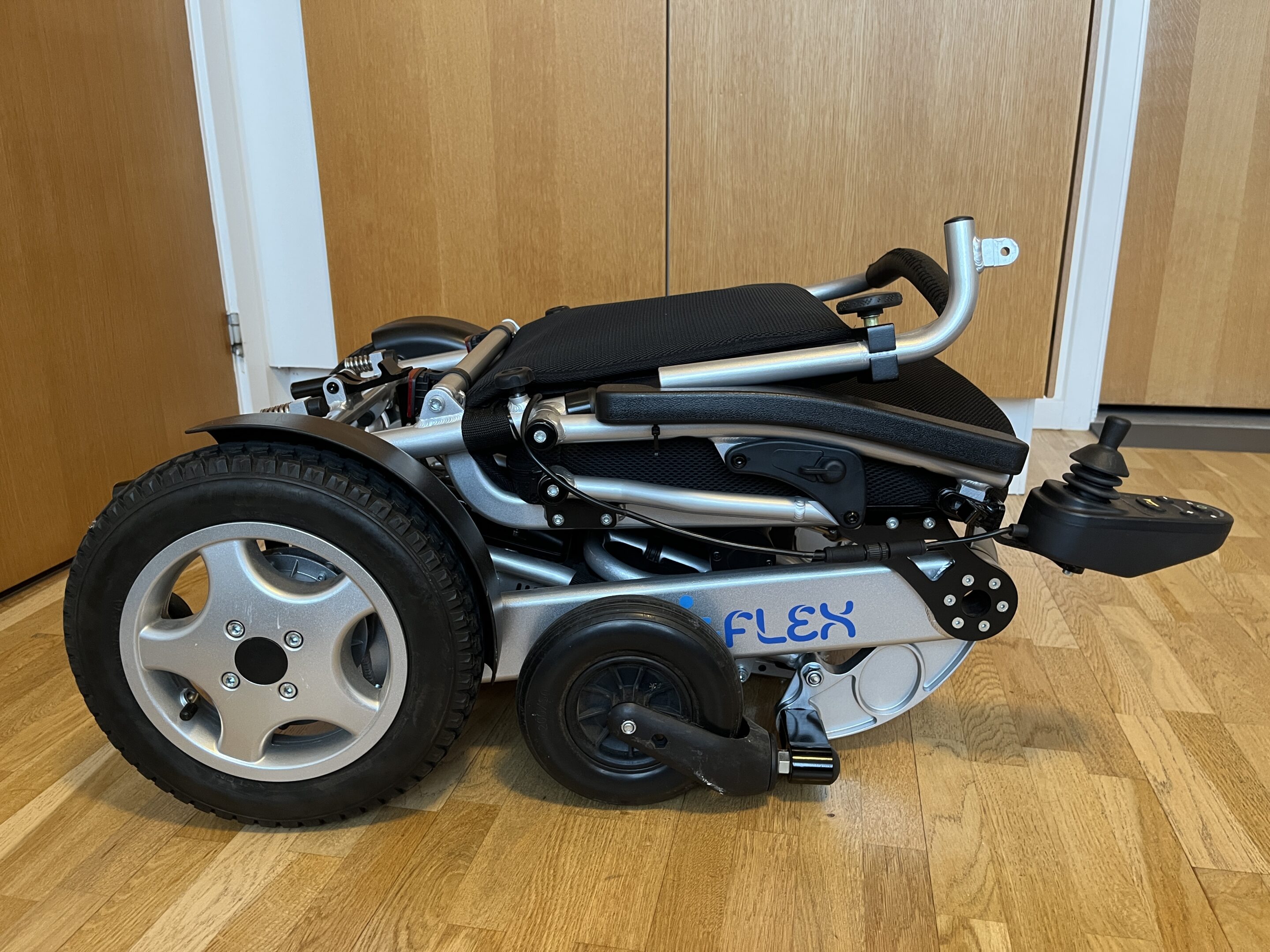 Næsten ubrugt Eloflex P el-kørestol med joystick funktion. Modellen har elektrisk vippefunktion i sædet, der letter ind- og udstigning og gør overgangen fra siddende til stående mere sikker. De store luftfyldte baghjul sikrer behagelig kørsel, selv på ujævnt underlag. Med to batterier som standard og plads til et tredje er rækkevidden op til 45 km, hvilket giver 7,5 timers brug på en enkelt opladning. Helt ny vinterjakke / kørepose medfølger.